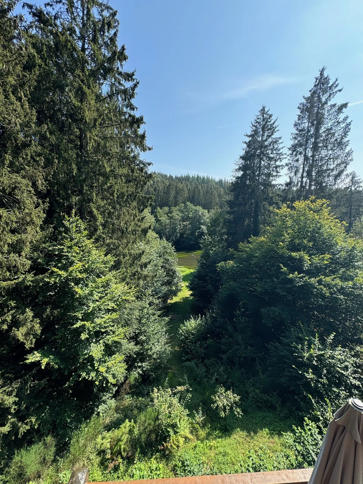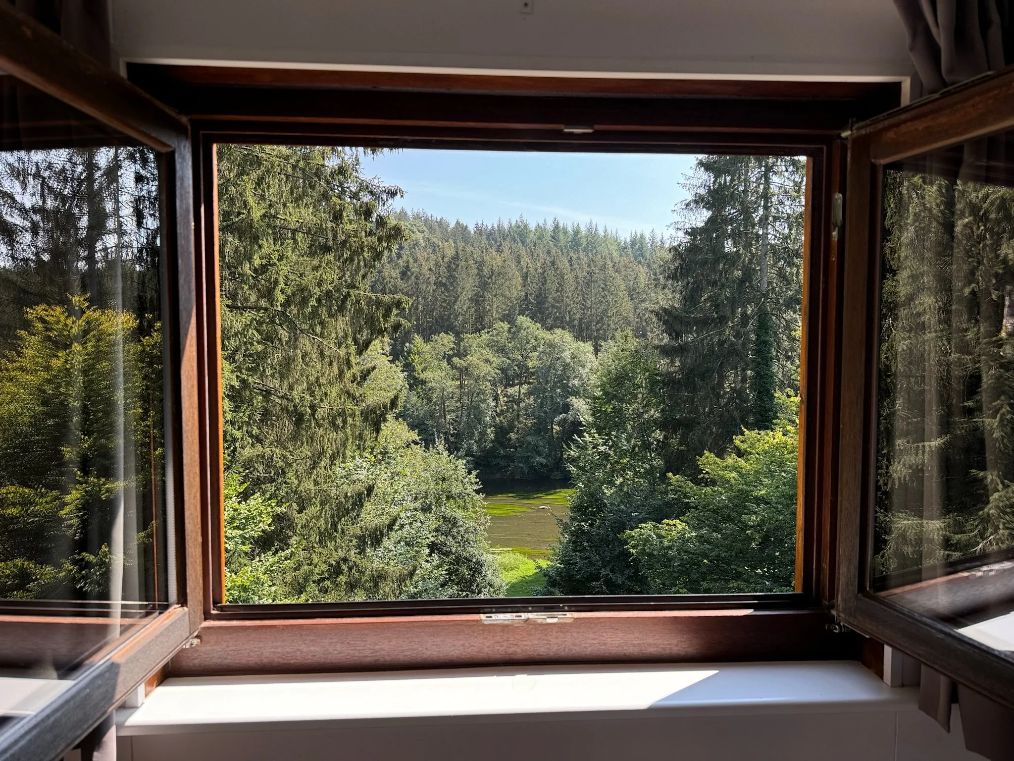 Vanop een helling kijk je uit op de mooiste rivier van België en de omliggende bossen.
