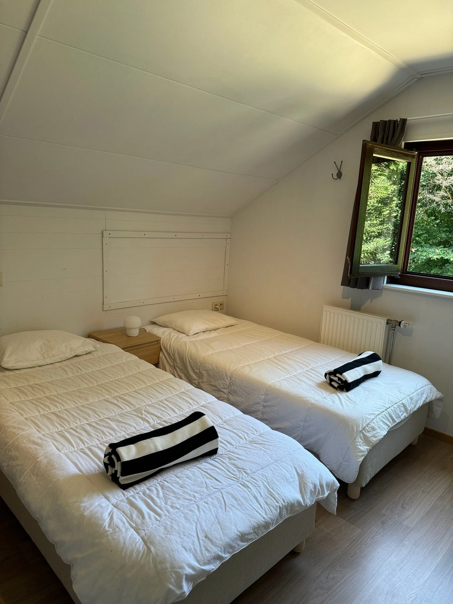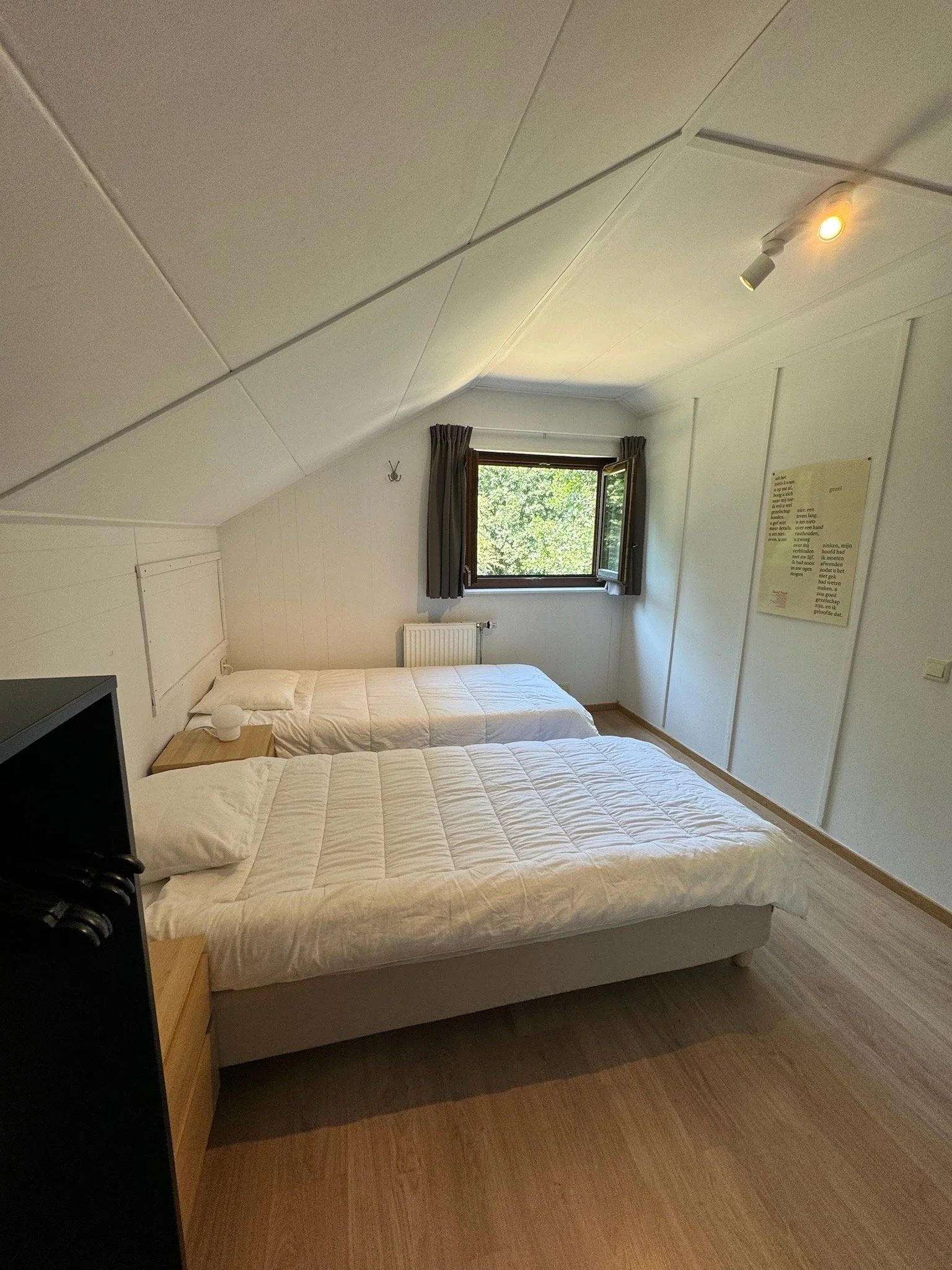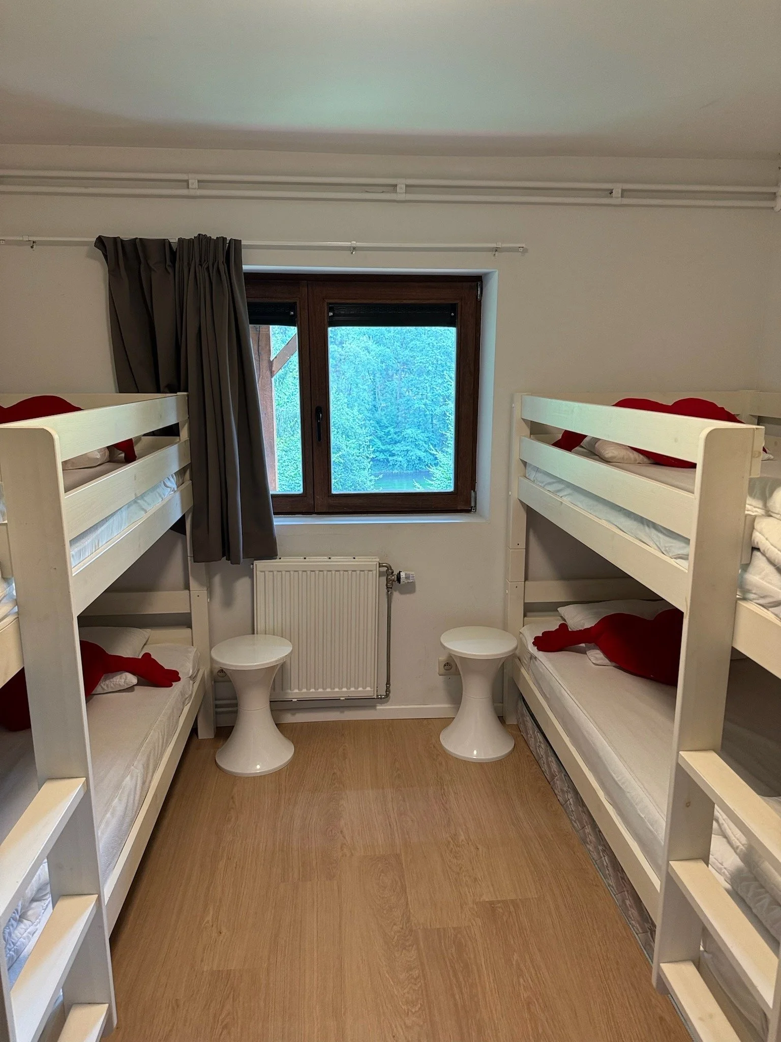 De 5 kamers zijn uitgerust met goede matrassen en hebben zicht op de natuur. Er zijn 4 dubbele bedden en 1 kamer bestaat uit 2 stapelbedden. In totaal zijn er 10 gasten welkom! Voor minder mobiele personen is de kamer op het gelijkvloers het best geschikt. Een baby-bedje, badje en verzorgtafel staat klaar.