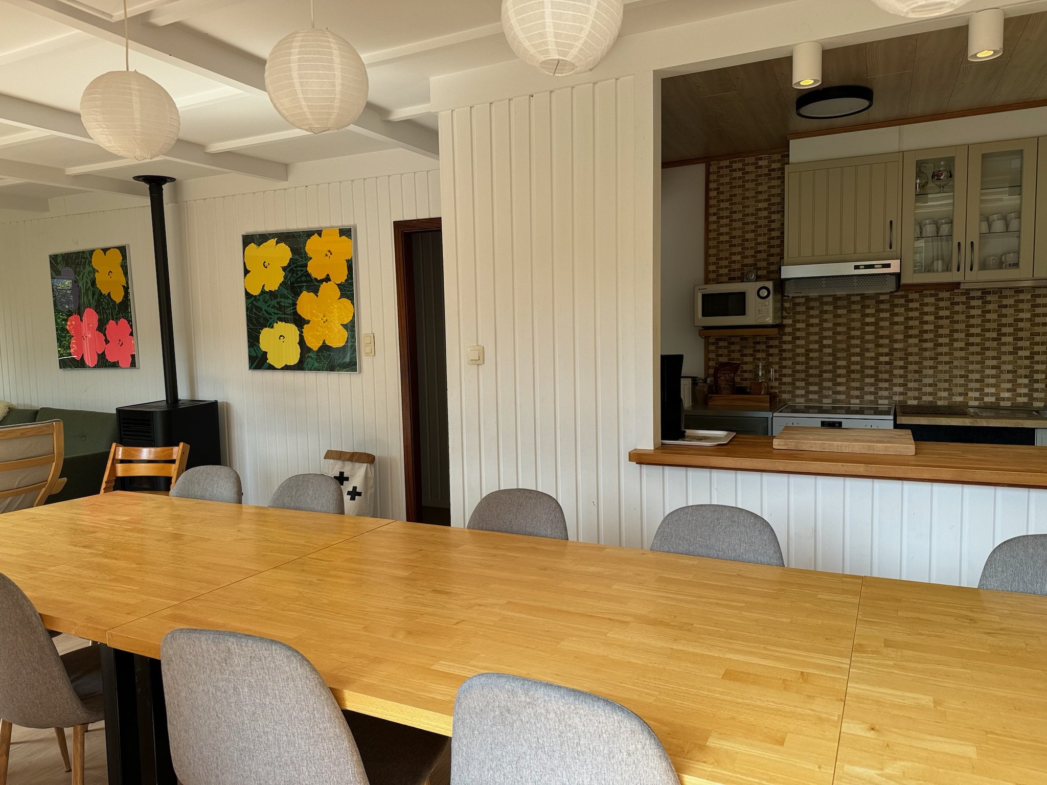 De keuken is uitgerust met een vaatwasser, oven, micro-golfoven, keramische kookplaat, fruitpers, grote gootsteen, koffiezet, warmwaterkoker, grote koelkast, mixer en broodrooster. In de bijkeuken staat een 2de koelkast met vriesvakje, een grote micro-golf en extra opbergrekken.